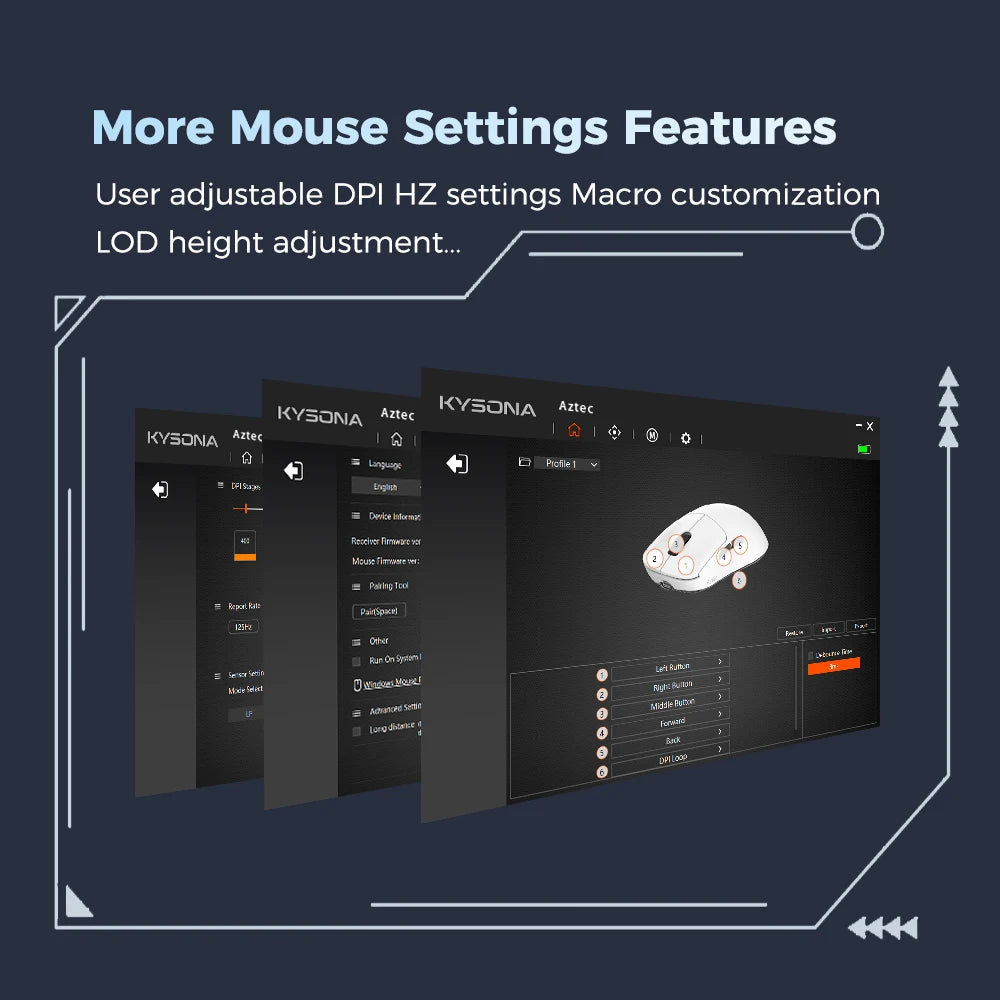Kysona Aztec Red Wireless Gaming Mouse PAW3395 55g Ultra-Light 26000DPI 6 Buttons 90 Million Optical Computer Mice For Laptop PC